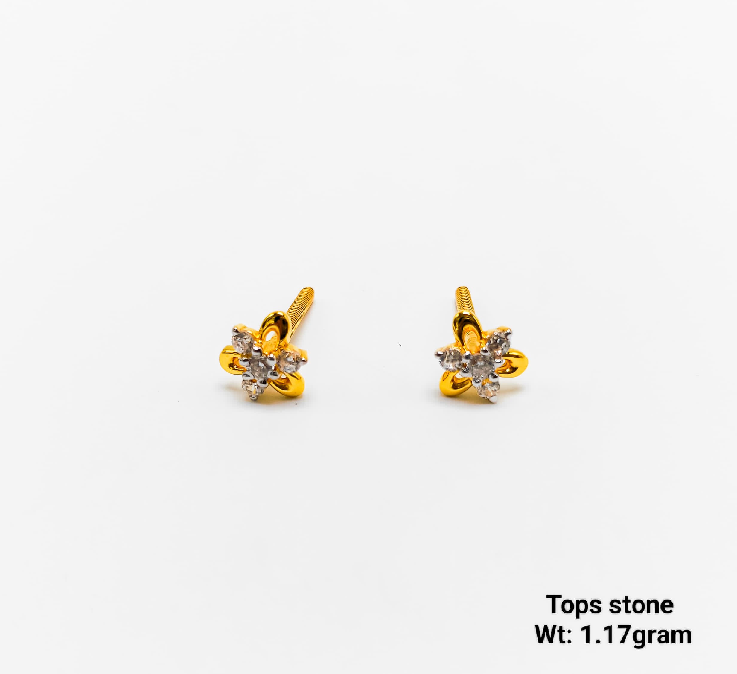 1.17g Tiny Gold Star-Flower Stud Earrings with Diamond Look CZ