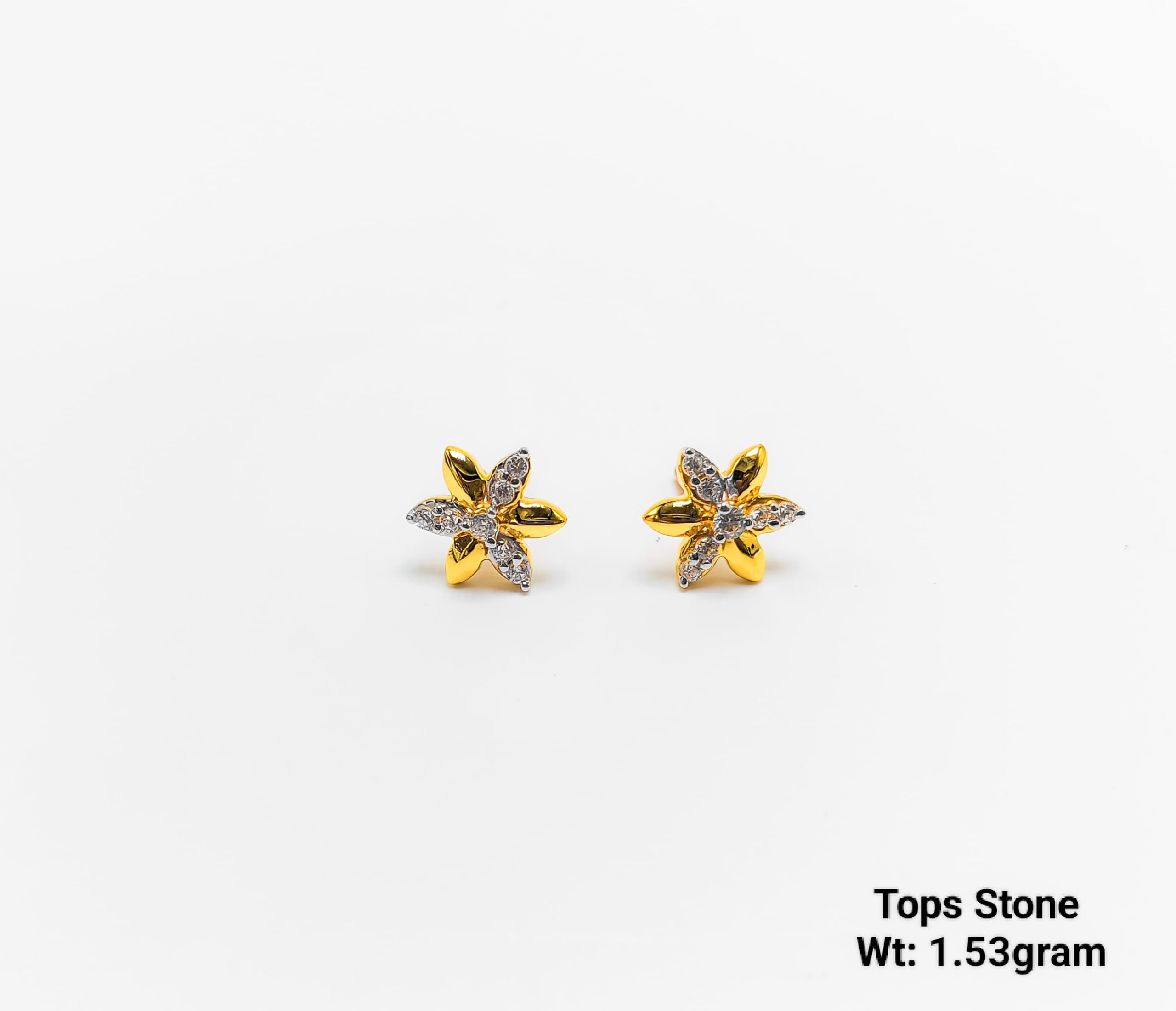 Floral Gold Stone Stud Earrings Six Petal Design 1.53g
