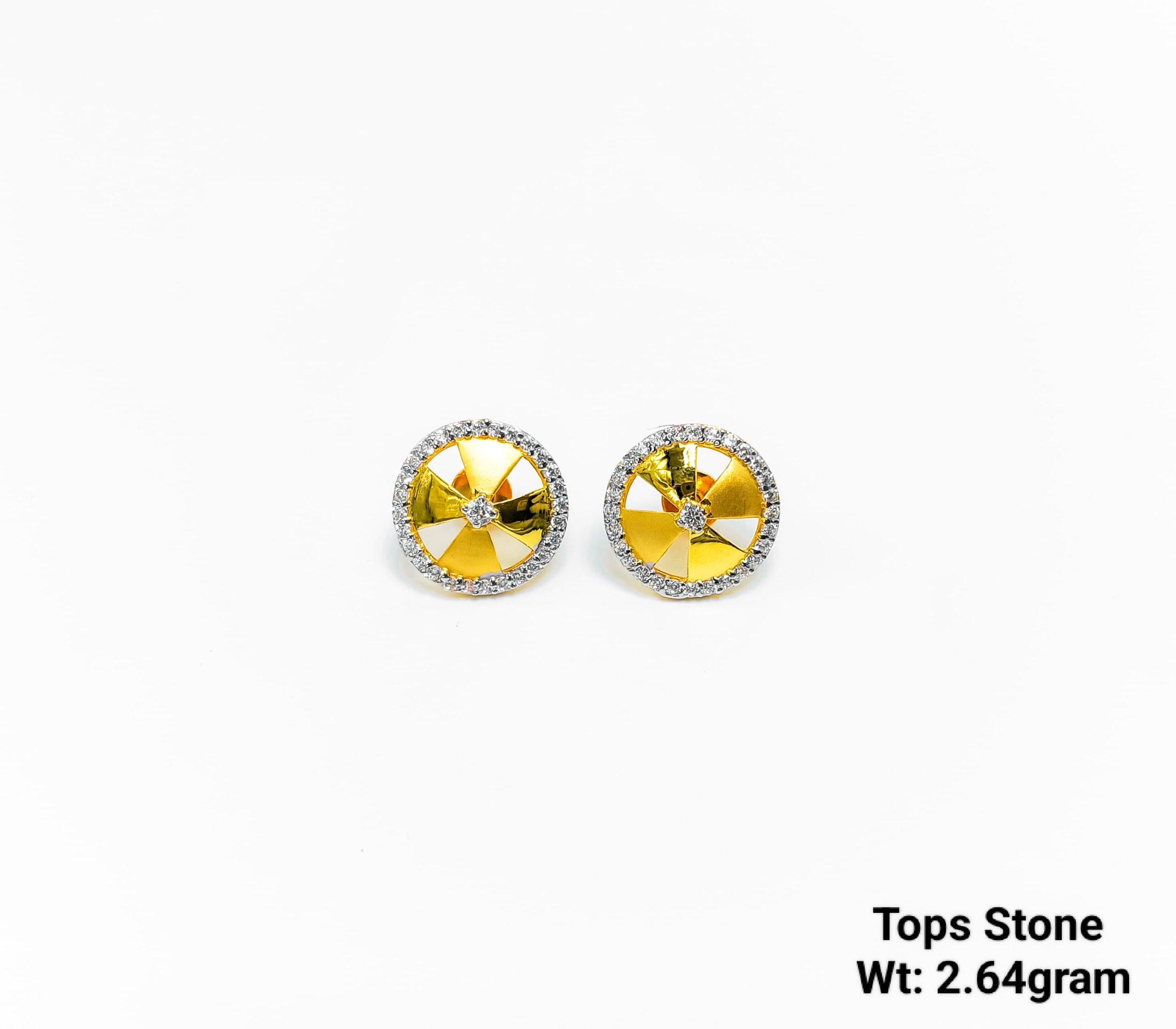 Gold Chakra Wheel Stone Studs Earrings – 2.64g Circle Design